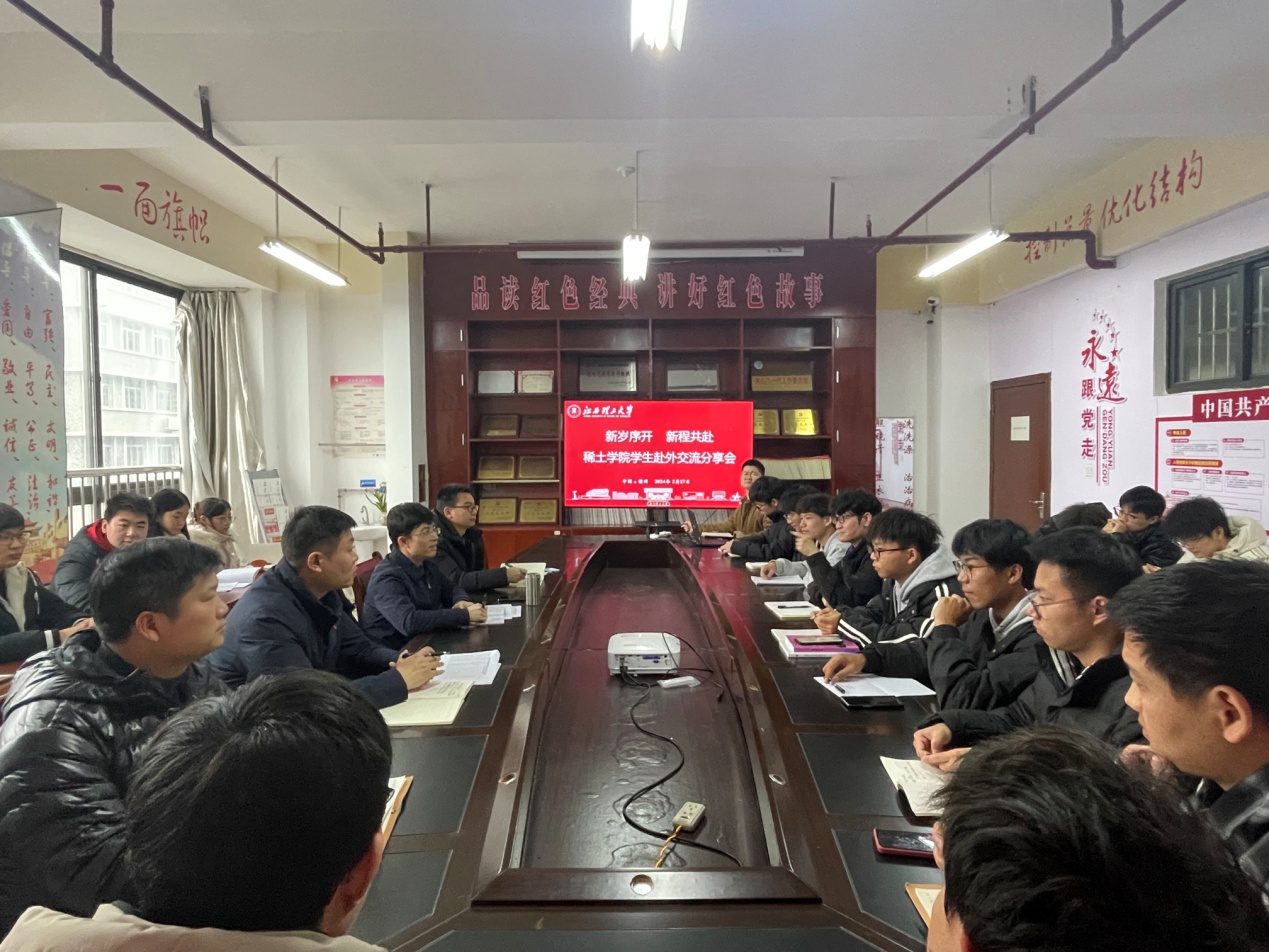 2月27日下午,“新岁序开,新程共赴”——稀土学院召开了赴外交流分享会,稀土学院院长汪航、党委副书记李振与同学们进行了行程后的交流互动。会上,同学们纷纷分享自己研学旅途中的收获,从对风土人情的感受到对未来生涯的规划,畅所欲言,氛围融洽。汪航对同学们的收获表示非常欣慰,也对同学们提出了建议和期盼。