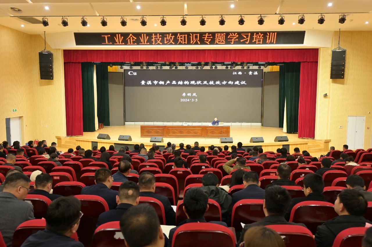 培训会上,李明茂以“贵溪市铜产品结构现状及技改方向建议”为题,从贵溪铜产业结构、工艺技术和装备水平、产业链融合情况、技术创新和引领能力等方面,通过数据对比、精准分析贵溪铜产业优势和短板,提出贵溪铜产业技改方向建议。整堂授课思路清晰、内容丰富、紧贴实际,具有很强的指导性和操作性。