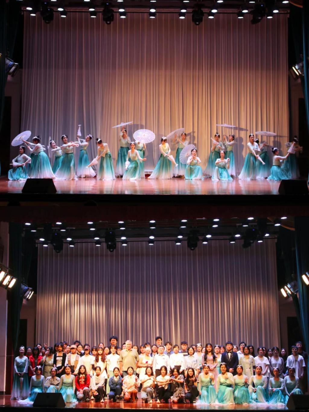 文化周闭幕式在红旗校区大礼堂举行,外国语学院与中俄项目班学子带来了舞蹈、古筝、俄语合唱等多个精彩节目。俄语传声筒、你划我猜等小游戏将现场气氛推向高潮。文化周活动在中外文化的交流和互鉴中落下帷幕。