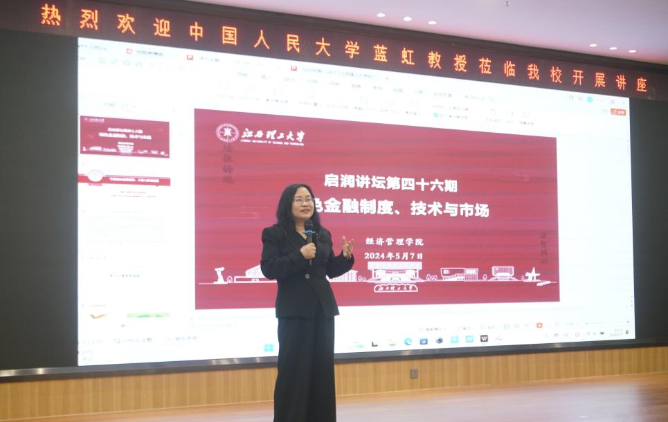 本网讯 近日,经济管理学院在三江校区图书馆报告厅开展“绿色金融制度 技术与市场”主题讲座。本次讲座由颜射