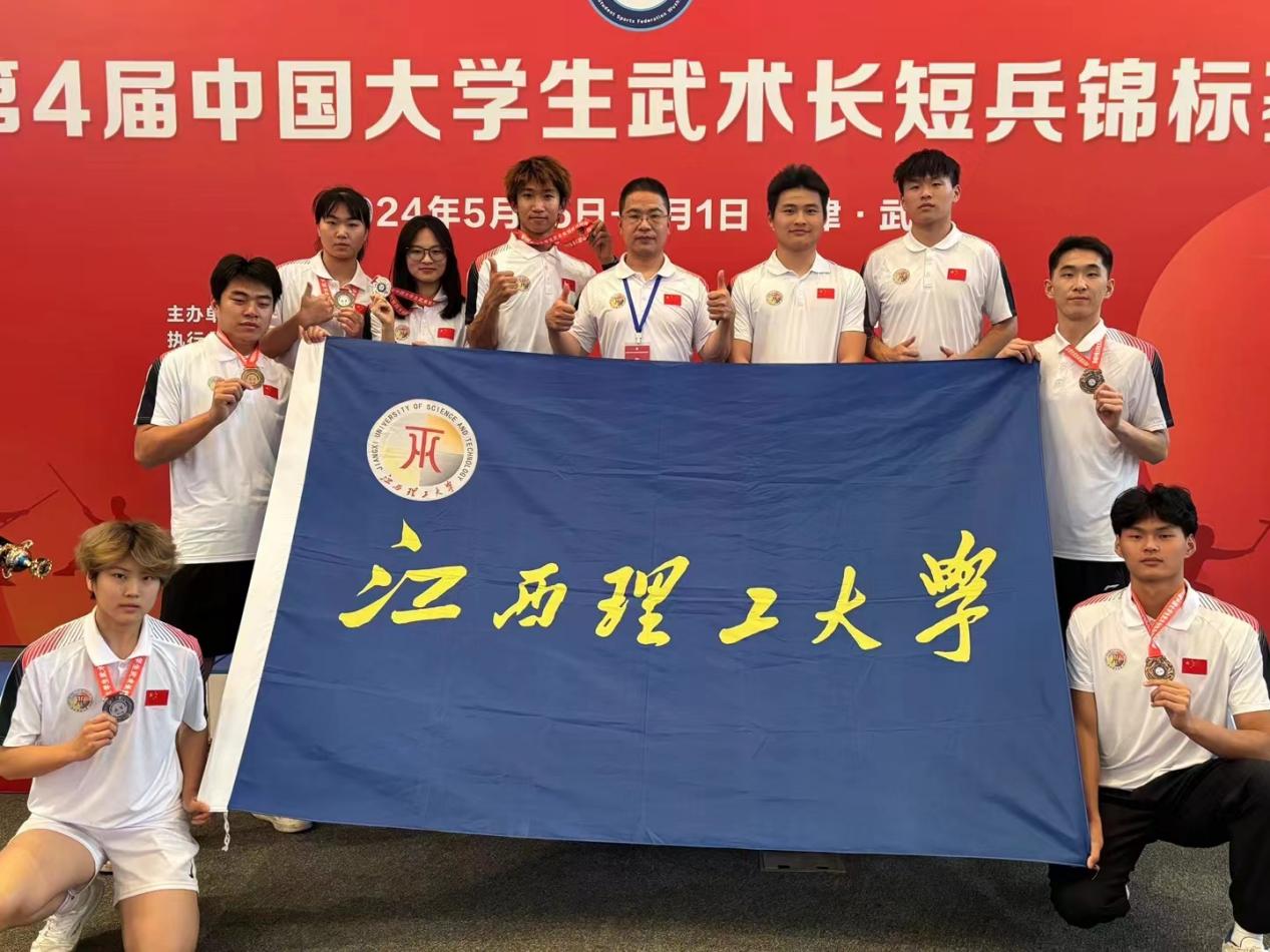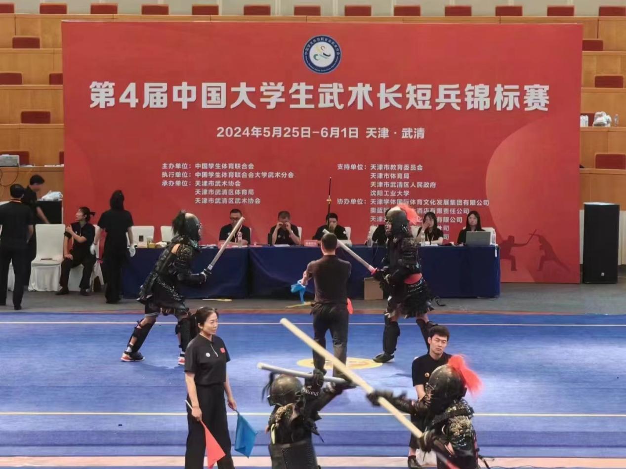 本网讯 5月27日,第四届中国大学生武术长短兵锦标赛在天津市武清区拉开帷幕。颜射 代表队在比赛中勇创佳绩,取得甲组3枚银牌、2枚铜牌、2个前五,丙组1枚铜牌,甲B组团体总分全国第四名的优异成绩,并获得体育道德风尚奖;杨帆同学获得“体育道德风尚运动员”称号。