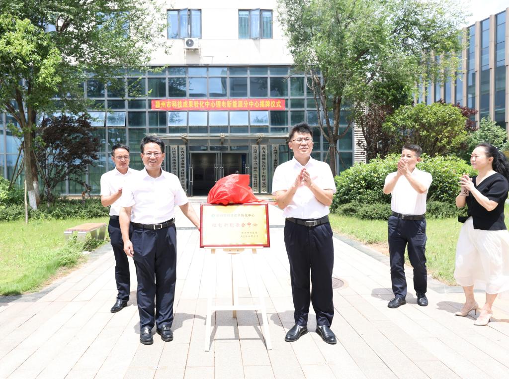 与赣州市科技成果转化中心锂电新能源分中心举行揭牌仪式。校党委常委、副校长董冰岩,经开区党工委副书记、管委会主任梁丁盛,市科技局党组书记、局长郭澜,经开区党工委委员、管委会副主任夏寿宏等出席揭牌仪式。市科技局、区有关职能部门(单位)负责人,部分高校科研院所和经开区新能源及新能源汽车产业企业代表等参加活动。仪式由夏寿宏主持。