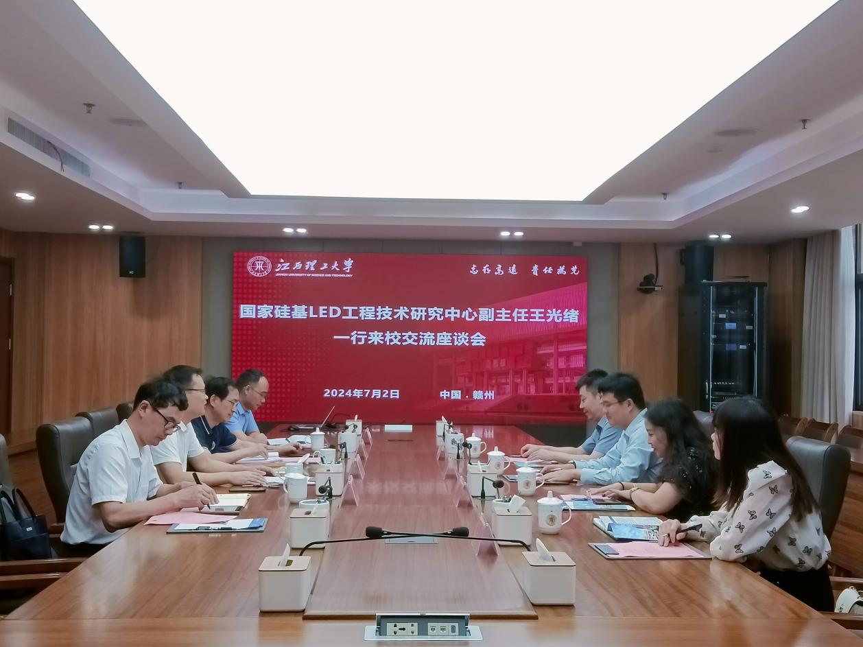 本网讯 7月2日上午,国家硅基LED工程技术研究中心副主任王光绪一行来访。校党委常委、副校长熊志华在三江校区濂溪楼1号会议室与来宾进行了座谈交流。信息工程学院(人工智能学院)院长杨书新、理学院院长徐中辉、分析测试中心主任叶信宇参加座谈。