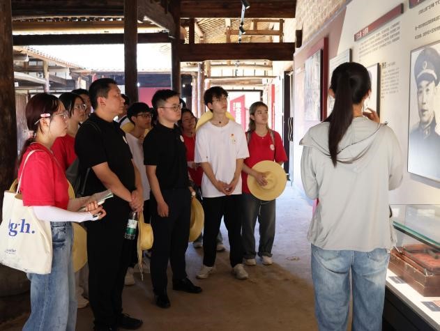 7月11日,实践队来到上高县新界埠镇桐山村红一军团红四军第三纵队指挥部旧址,开展红色足迹走读活动。队员们走访了红军指挥部旧址、红色影院、红色直播间等地,了解了傅学祥、胡菊花等桐山知名革命先辈的事迹。学习过程中,爱国之心、报国之情、强国之志深深融铸于队员们的精神世界。