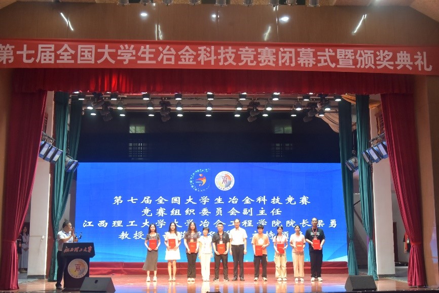 冶金工程学院院长梁勇宣读了第七届全国大学生冶金科技竞赛的获奖名单。出席典礼的领导与嘉宾分别为获奖队伍及高校代表颁奖。颜射