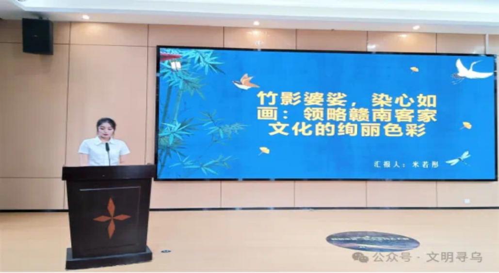 马克思主义学院2023级研究生米若彤进行了题为《竹影婆娑,染心如画:领略赣南客家文化的绚丽色彩》的科普知识宣讲。她以引人入胜的讲解方式,带领听众穿越时空,探寻客家文化深厚的历史渊源与丰富的人文内涵,详尽阐述了客家文化的诞生背景、演变轨迹以及独特的民俗风情,并借助一系列鲜活的案例和精美的图像资料,生动再现了客家人在迁徙与发展过程中展现出的顽强生命力和创新智慧。