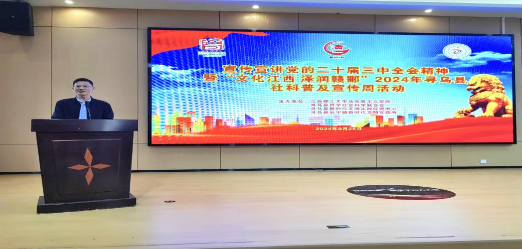 马克思主义学院、寻乌县哲学社会科学联合会、寻乌县新时代文明实践促进中心联合主办,长宁镇新时代文明实践所承办的宣传宣讲党的二十届三中全会精神暨“文化江西 泽润赣鄱”2024年寻乌县社科普及宣传周活动在长宁镇三二五文化客厅正式开启。