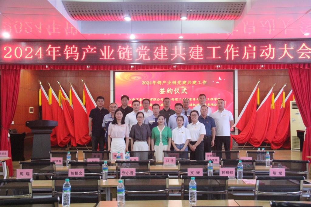 本网讯  9月27日,资源与环境工程学院党委携手江西下垄钨业有限公司党委、江西省地质局第七地质大队党委及江西鑫通机械制造有限公司党支部,在江西下垄钨业有限公司办公楼5楼会议室共同举行2024年钨产业链党建共建启动会。江西下垄钨业有限公司党委书记、董事、总经理段志文,资源与环境工程学院党委副书记张春雷、江西省地质局第七大队党委书记黄明光、江西鑫通机械制造有限公司党支部书记黄良以及下垄钨业有限公司中层以上干部及职工代表、各单位代表参加了启动会。会议由下垄钨业党委委员、副总经理殷建忠主持。