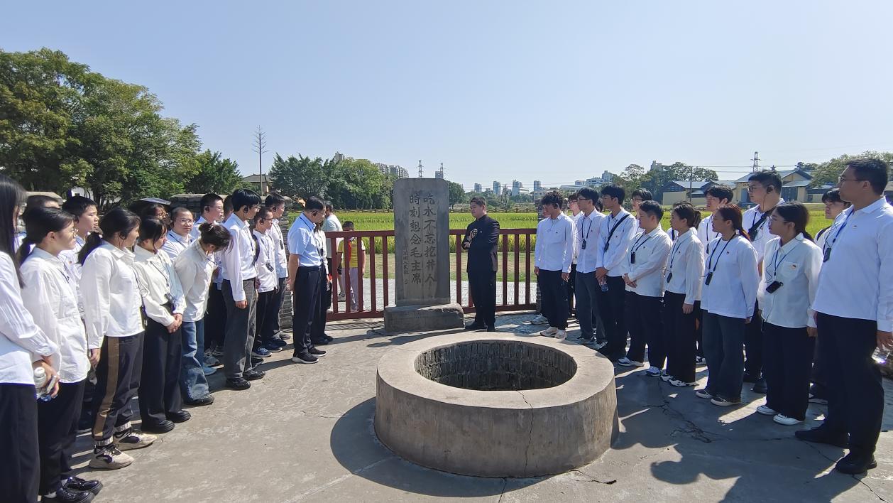 沙洲坝红井,井口很大但不算深,井旁立着一块石碑,上面是苏区人民为了感谢毛主席而题写的十四个大字“吃水不忘挖井人,时刻想念毛主席”。毕业生党员刘浩杰通过讲解《吃水不忘挖井人》的红色故事,带领党员们重温了毛主席带领军民挖出一口井,解决当地老百姓饮水困难的历史,党和苏区人民鱼水情深的动人场景,仿佛又浮现在眼前。
