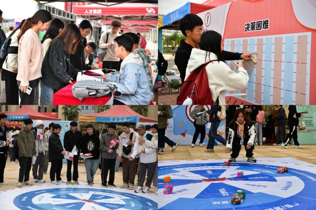 近日,“小理探生涯”职业规划与就业体验主题活动在三江校区冶金广场火热上演,活动通过轻松有趣的闯关游戏引导学生树立起正确的就业观和择业观。