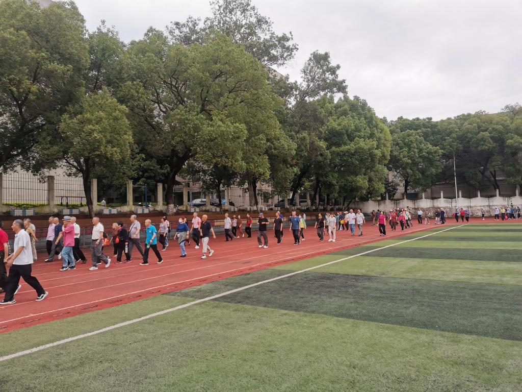 老年体协气排球队的队员们又来到了球场上,他们弯弯腰、伸伸臂,做着运动前的准备动作。队员们每天都会按时来到这里进行锻炼,增强自身身体素质,弘扬“生命不息,运动不止”的精神。