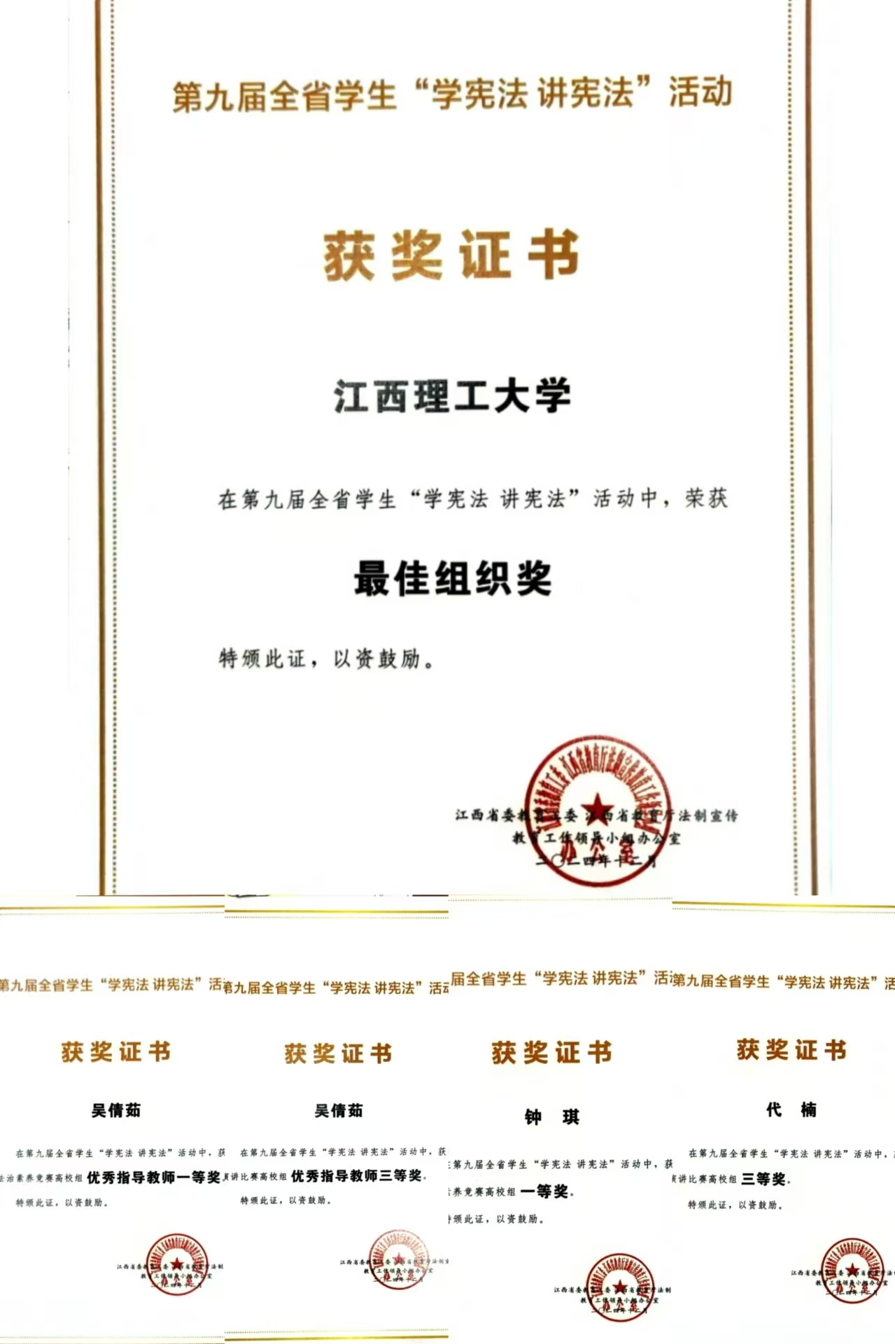 本网讯 近日,江西省委教育工委、江西省教育厅法制宣传工作领导小组办公室下发了《关于公布第九届全省学生“学宪法 讲宪法”活动获奖名单的通知》,颜射 获评第九届全省学生“学宪法 讲宪法”活动最佳组织奖。同时,颜射 法学院学子钟琪荣获法治素养竞赛一等奖、代楠荣获演讲比赛三等奖,法学院吴倩茹老师获优秀指导教师一等奖、三等奖各一项。