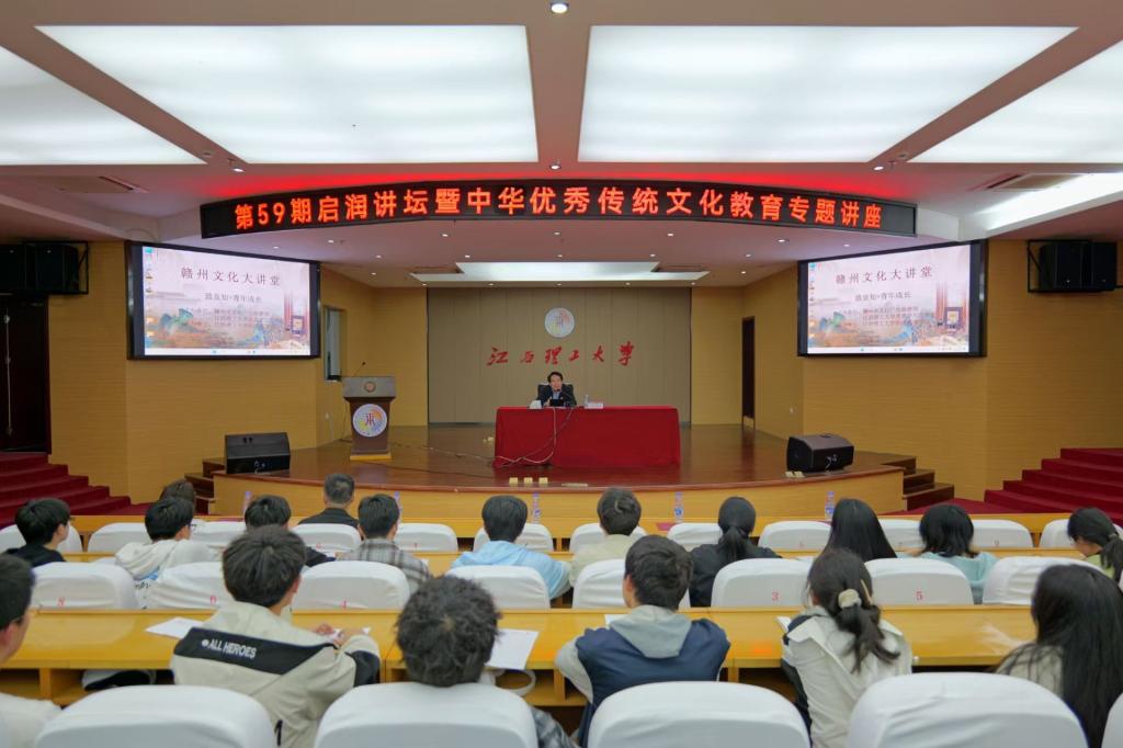 中华优秀传统文化教育专题讲座在红旗校区图书馆报告厅举行,讲座以“致良知+青年成长”为主题,由赣州市文广旅局党组书记、局长李俊锐担任主讲。校党委学生工作部部长贾群燕,经济管理学院、稀土学院240名师生参加。