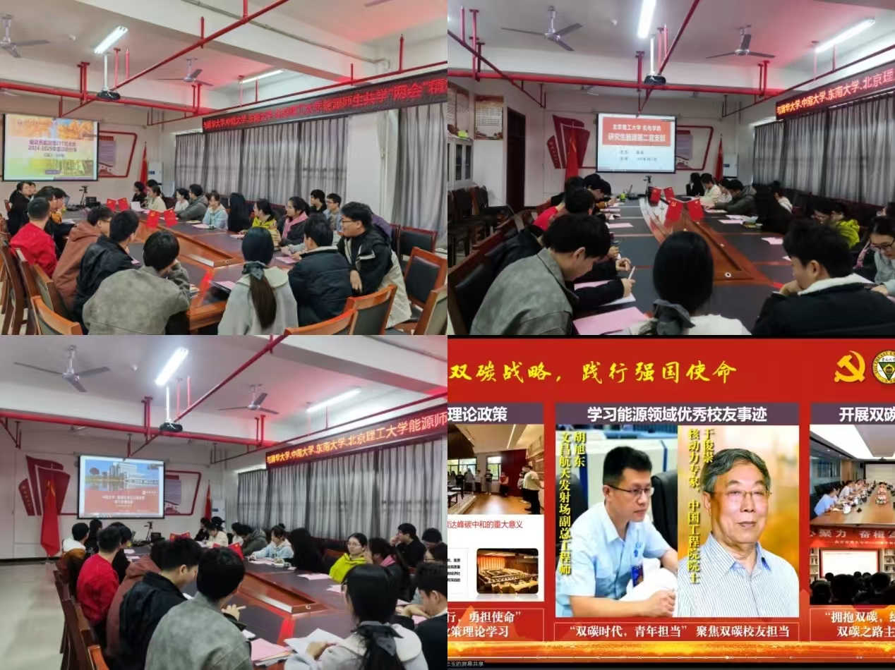 能源与机械工程学院研究生党支部联合清华大学、东南大学、中南大学、北京理工大学四所高校能源领域师生,以“聚力攻坚双碳路 奋楫扬帆正当时”为主题,线上线下同步开展共学两会精神专题联建联学会。五校200余名师生代表参会。会议由东南大学能源与环境学院团委书记沈子靖主持,设1个主会场和4个云端分会场。