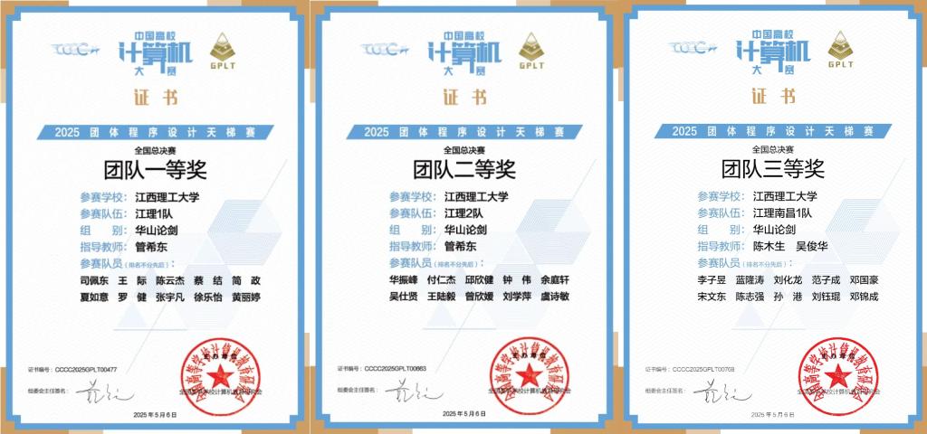 共7支队伍参加了本次比赛,最终信息工程学院管希东老师指导的江理1队荣获全国团队一等奖,江理2队荣获全国团队二等奖,软件工程学院陈木生老师和吴俊华老师指导的江理南昌1队荣获全国团队三等奖。本次参赛获奖学生包括信息工程学院、软件学院和理学院的多个专业共计30人,体现了颜射