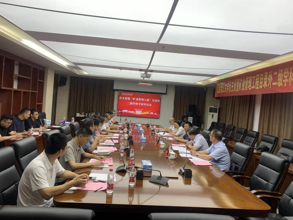 学科建设办公室、研究生院以及经济管理学院、商学院组织召开了自主设置“矿业管理工程”目录外二级学科专家评议会。国防科技大学刘忠教授、中国科学院大学董纪昌教授、大连理工大学李文立教授、北京航空航天大学吴俊杰教授、哈尔滨工业大学张紫琼教授、北京科技大学李克庆教授、江西财经大学刘小丽教授、南昌大学彭继增教授、江西师范大学黄小勇教授担任评审专家。校党委常委、副校长黄志繁,研究生院、经济管理学院、商学院相关负责人参加会议。会议由经济管理学院院长朱文兴和专家组组长刘忠教授分阶段主持。