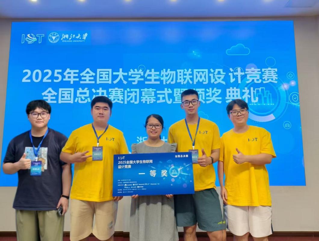 本网讯 8月27日至29日,2025年全国大学生物联网设计竞赛全国总决赛在浙江大学举行。经过初赛、分赛区决赛、全国总决赛三轮激烈角逐,由电气工程与自动化学院的林天毅、臧祥善、刘汉晨、肖凯蔚四位同学(指导老师:韩树人)组成的团队获得全国一等奖。
