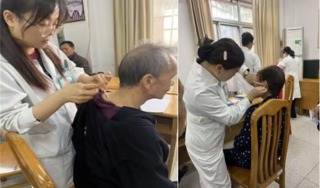 专家们结合老同志们既往的体检报告,详细询问身体状况,耐心解答各种健康疑问,提供了个性化的疾病预防、合理用药及居家护理指导。中医康复科的专家们还现场施展针灸、耳穴刺激等传统技艺。校医院的工作人员全程参与,确保义诊活动高效、顺畅、有序地进行。