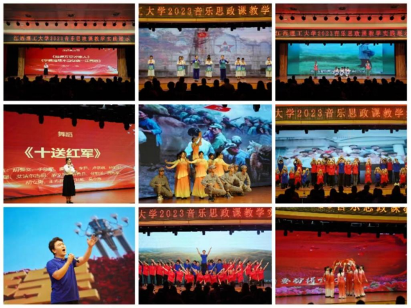 学校思政课通过编创红色音乐和红色文艺节目来演绎爱党爱国的旋律,优化“沉浸式思政课”的育人路径。以中央苏区革命历史为题材,在《中国近现代史纲要》《思想道德与法治》课程中融入红色音乐,以节目展演的方式深化音乐思政课教学改革。同时,师生门以中央苏区红色文艺为蓝本,把自己编创的红色文艺节目搬上舞台,开展红色文艺实践汇演。