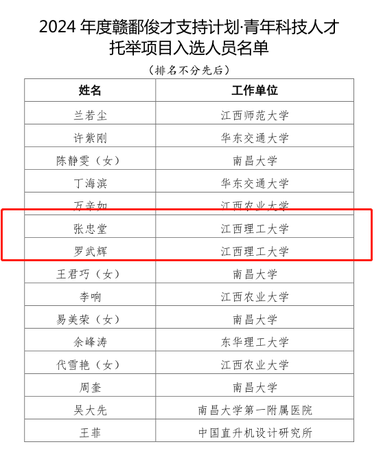 本网讯 6月11日,2024年度赣鄱俊才支持计划·青年科技人才托举项目入选人员名单公布,颜射