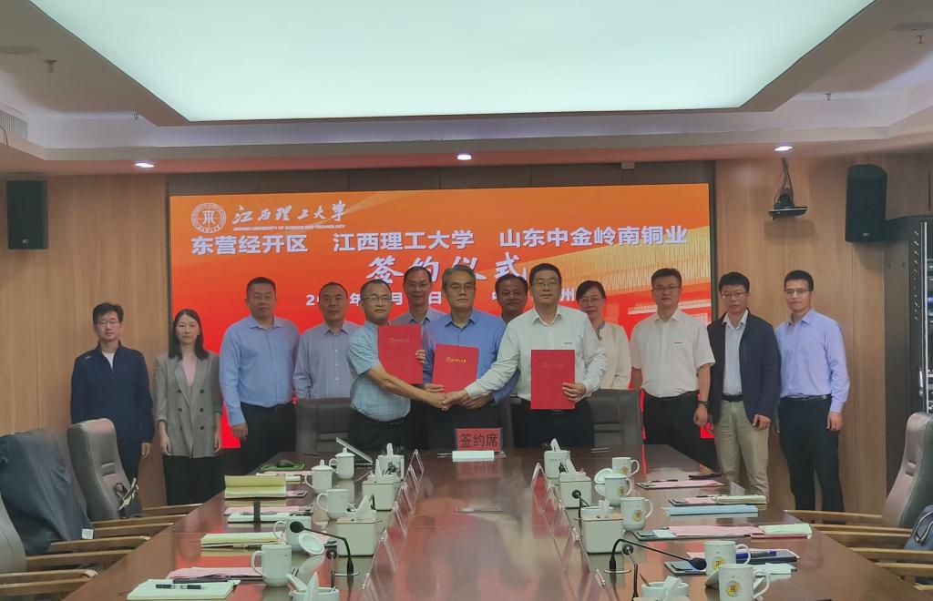 在与会人员的共同见证下,学校与东营经济技术开发区、山东中金岭南铜业有限责任公司签署校政企战略合作协议,与山东中金岭南铜业有限责任公司签署科技项目合作协议。