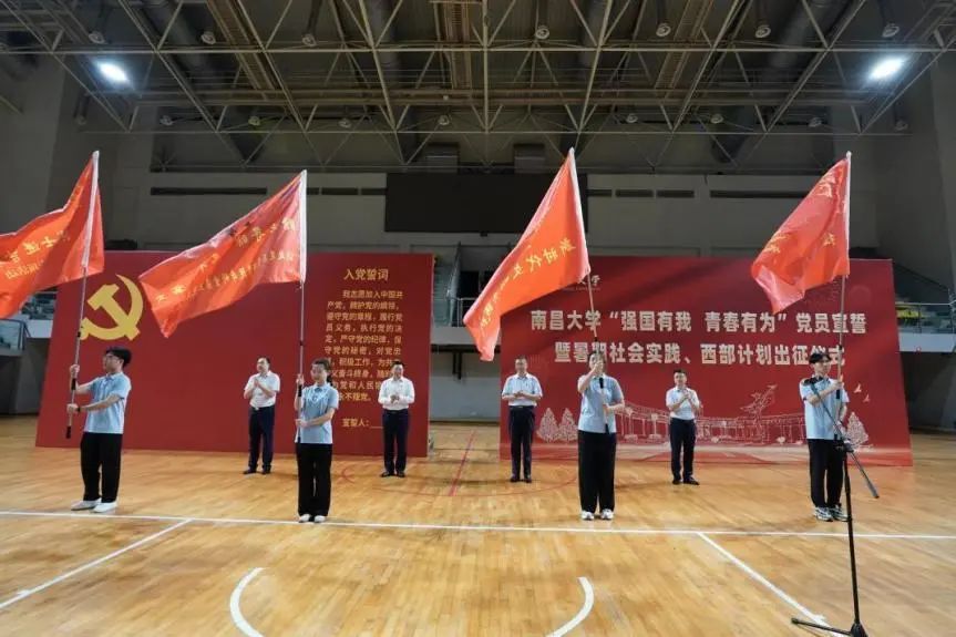 7月1日,南昌大学举行出征仪式。校党委书记罗嗣海带领党员宣誓、慰问社会实践队队员,并向暑期社会实践队代表授旗,鼓励南昌大学学子接过历史的“接力棒”,走好脚下的“长征路”,传承“爱国、自强、创新、唯实”的精神,向着祖国最需要的地方前进,为实现中华民族伟大复兴的中国梦而不懈奋斗。