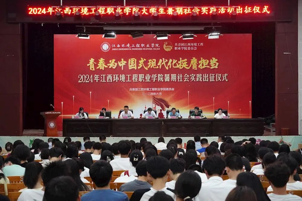 6月26日,江西环境工程职业学院举行2024年度大学生暑期社会实践出征仪式。校领导勉励同学们要利用各种机会,走出校门、走向社会,深入基层、深入群众当中,在新时代社会大课堂中认识新时代的伟大成就和伟大变革,了解国情民意,进而坚定理想、淬炼意志、增长才干。