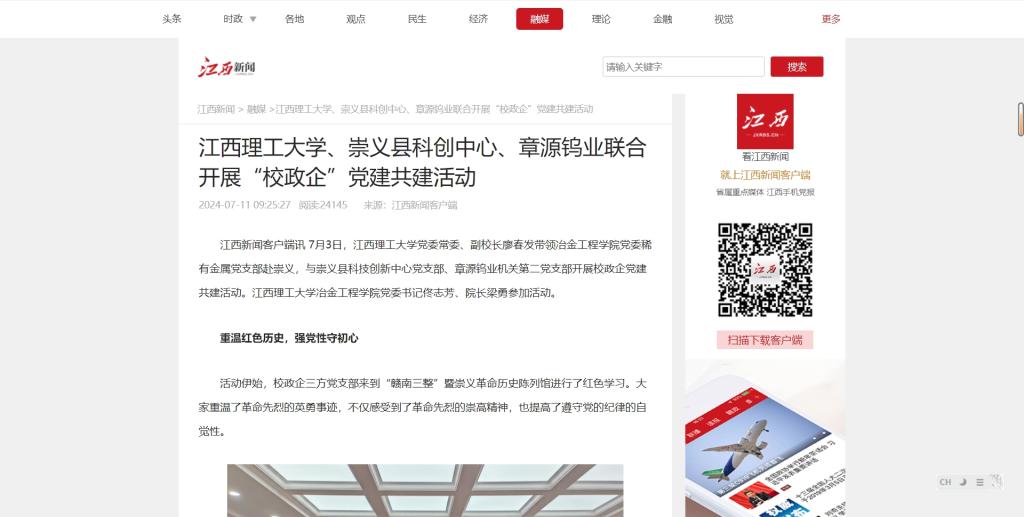 党委常委、副校长廖春发带领冶金工程学院党委稀有金属党支部赴崇义,与崇义县科技创新中心党支部、章源钨业机关第二党支部开展校政企党建共建活动。颜射