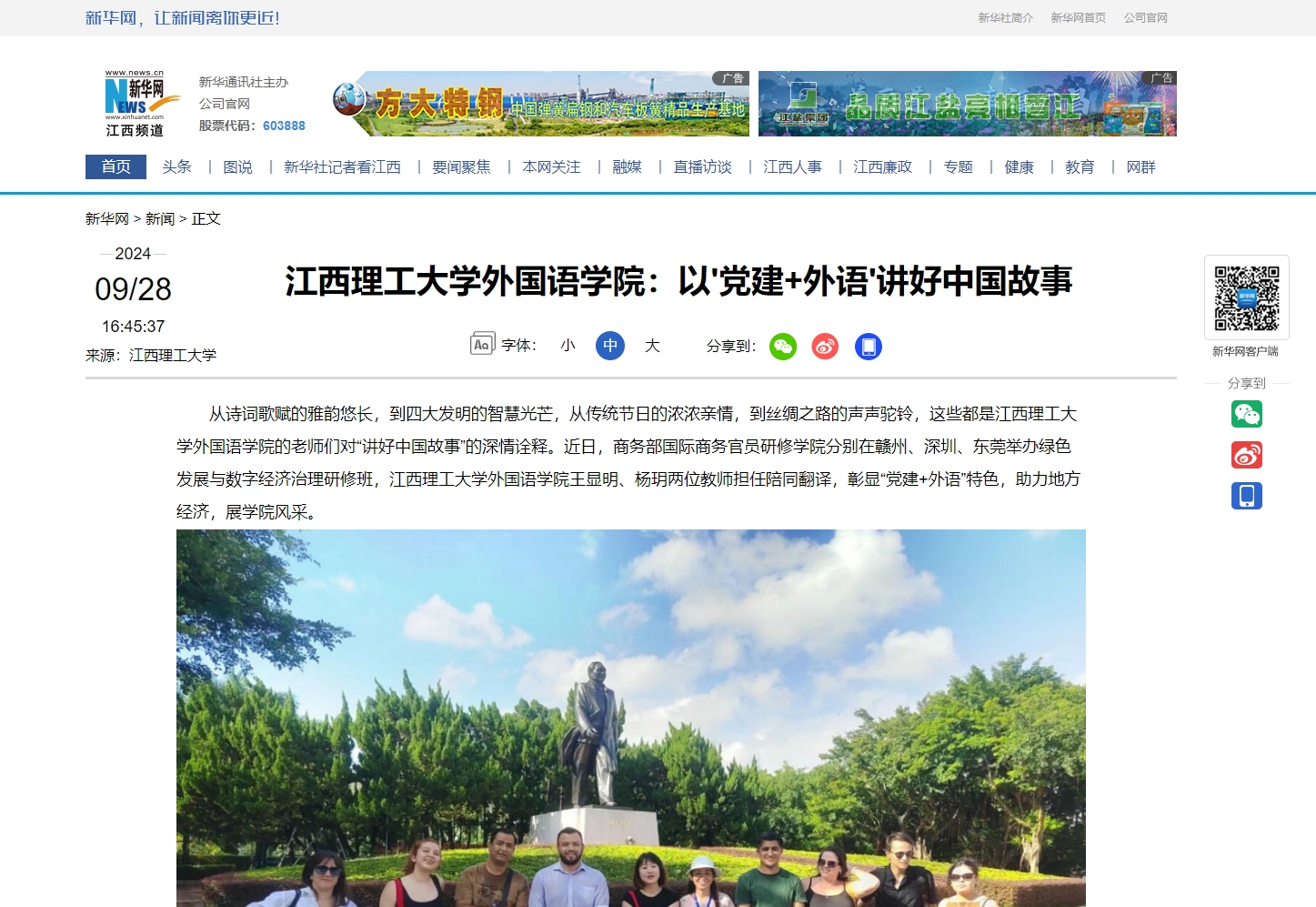 外国语学院的老师们对“讲好中国故事”的深情诠释。近日,商务部国际商务官员研修学院分别在赣州、深圳、东莞举办绿色发展与数字经济治理研修班,颜射