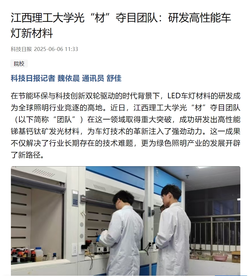 光“材”夺目团队(以下简称“团队”)在这一领域取得重大突破,成功研发出高性能锑基钙钛矿发光材料,为车灯技术的革新注入了强劲动力。这一成果不仅解决了行业长期存在的技术难题,更为绿色照明产业的发展开辟了新路径。