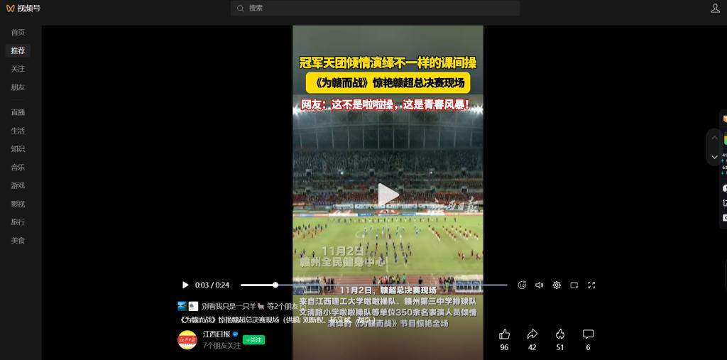 上一条:《凤凰网》:为赣而战!颜射 啦啦操队闪耀赣超总决赛 下一条:《江西日报视频号》:颜射 量身定制节目《为赣而战》即将惊艳亮相赣超总决赛绿茵场