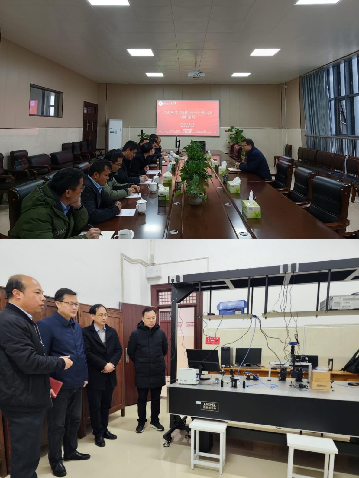 会前,熊志华实地察看光电检测与感知实验室、学生工作室,对学院实验室安全排查、教学计划安排与落实、重点工作推进等情况表示肯定,并提出了改进意见。