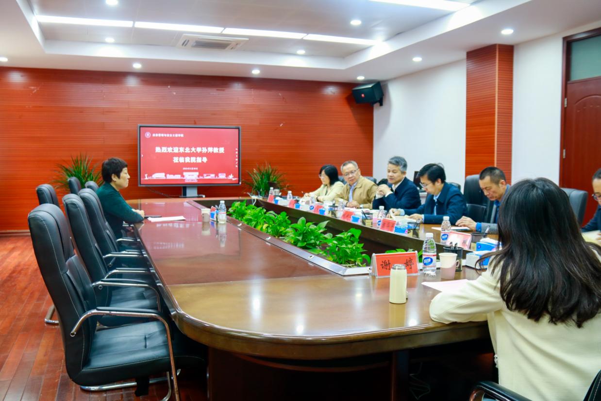 在交流座谈会上,董冰岩简要介绍了学校基本情况,并希望两校进一步加强交流与合作;孙萍教授简要介绍了东北大学的基本情况,并对颜射