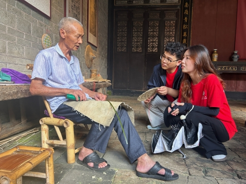 在关西新围,实践队队员与客家竹编非遗传承人徐昌添、关西围家族长者徐水标进行了面对面交流。76岁的徐昌添说:“我从16岁开始学习客家竹编,至今已经坚持了整整60年。新手学习客家竹编,至少要三到五年才能学会。”他希望年轻后生多了解、宣传关西围和客家文化。在与他们的交谈中,实践队队员对当前客家非物质文化遗产传承的现况有了更深入的了解。