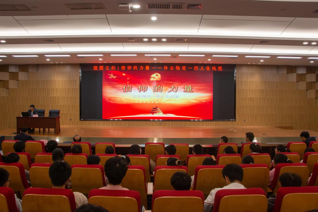 在三江校区图书馆报告厅举行《信仰的力量——外公陆定一的人生风范》红色主题讲座。本次讲座邀请了中国作家协会会员、赣州市红色文化研究会名誉会长、和君职业学院院长赖章盛教授主讲。讲座由校党委常委、宣传部部长盛晓明主持,校图书馆馆长蔡福瑞、副馆长李轶以及近三百名师生听取了讲座。