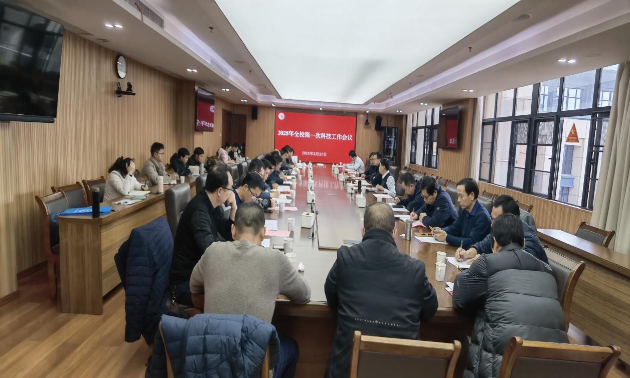 在三江校区濂溪楼2号会议室召开2025年全校第一次科技工作会。校党委常委、副校长熊志华,科学技术处、成果转移转化中心全体人员,各学院(国际创新研究院)分管科研工作副院长及科研秘书,各科研平台、产业研究院负责人参加会议。会议由校科学技术处处长吴彩斌主持。