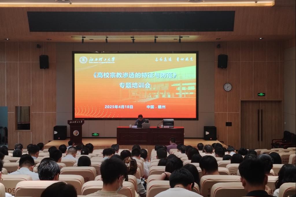本网讯 4月18日下午,颜射 在启航会议中心2号会议厅召开宗教工作专题培训会。会议邀请了江西省高校铸牢中华民族共同体意识研究中心常务副主任、南昌大学人文学院党委副书记胡邦宁作专题培训讲座。会议由校党委常委、统战部部长汪锋锁主持。
