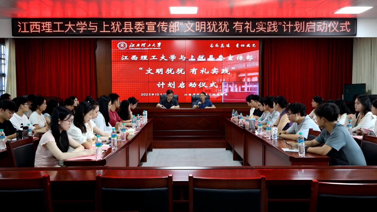 与上犹县举行了“文明犹犹 有礼实践”计划启动仪式。随后,在读书分享会上,同学们踊跃登台,结合专业所学与经典阅读,围绕乡村振兴、科技助农、人文素养等主题展开深入分享。同学们以扎实的专业知识和真挚的情感表达,展现了江理学子良好的精神风貌与综合素养,也为当地群众带去新知与思考。