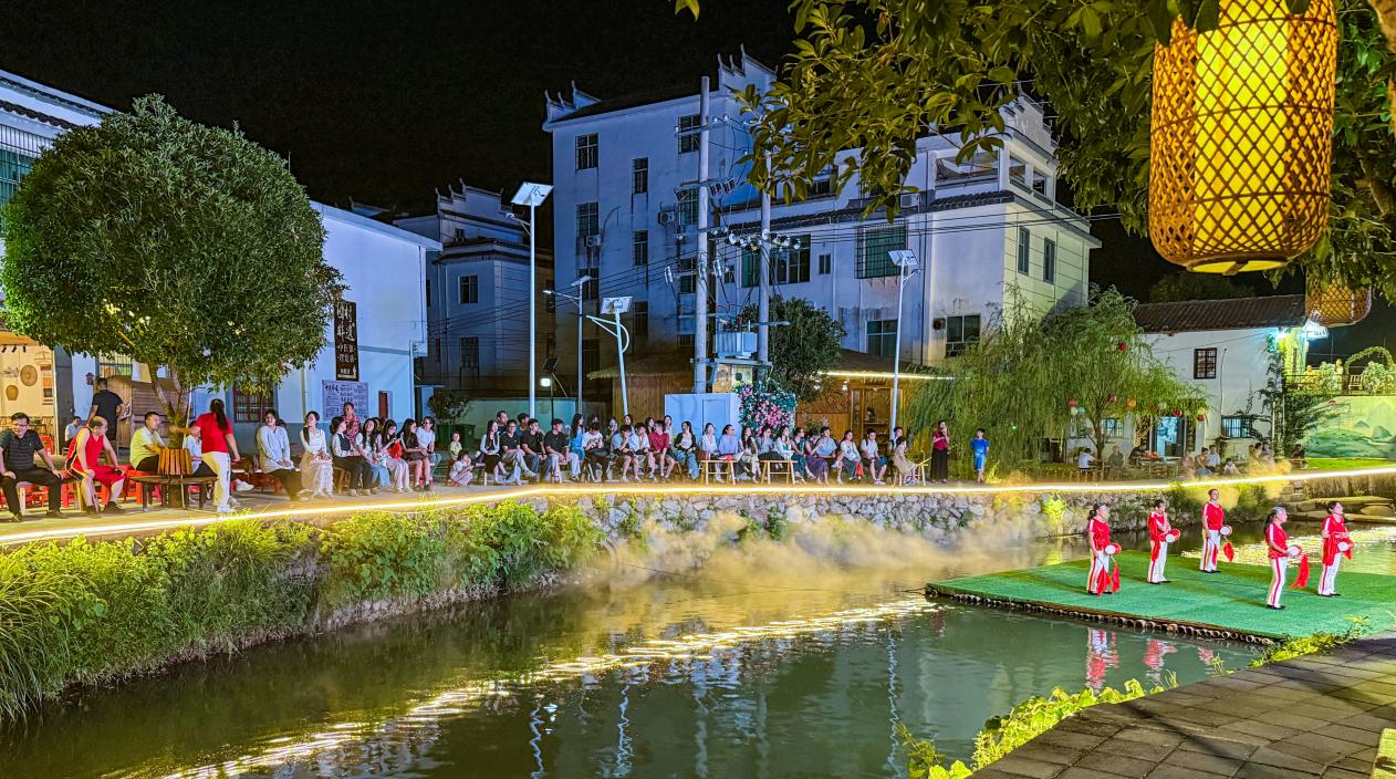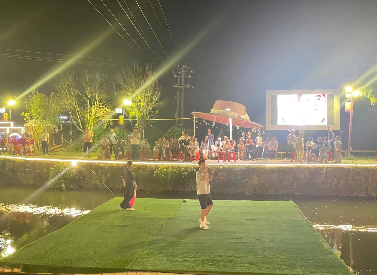 夜幕降临,园村非遗街的节目如期上演。在村民们精心编排的歌曲、舞蹈、朗诵等节目中,同学们积极参与互动环节,以青春的姿态与乡村文化碰撞出别样火花。同学们的精彩表现赢得现场阵阵喝彩,为非遗街的夜晚增添了青春风采,也在文化互动中深化了对乡村非遗文化的认知,为校地文化交融写下生动注脚。