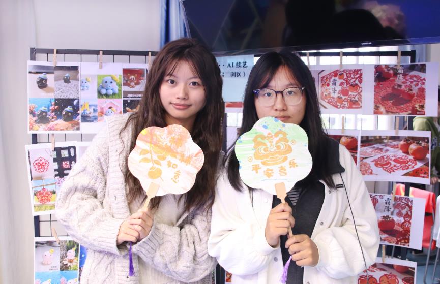 活动现场还设置了以“手工作品+AI创作”为核心的“指尖匠心·AI续艺”展区。学生们将亲手制作的作品,通过AI技术进行智能再造与艺术升华,切身体验从实体艺术到数字艺术转化的创造性过程。马雅舒同学表示:“亲手将剪纸融入AI进行再创作,让我感觉到科技的亲和力。这不仅为传统文化的创新带来无限空间,还加深了我们对中华优秀传统文化创造性转化和创新性发展的理解。”
